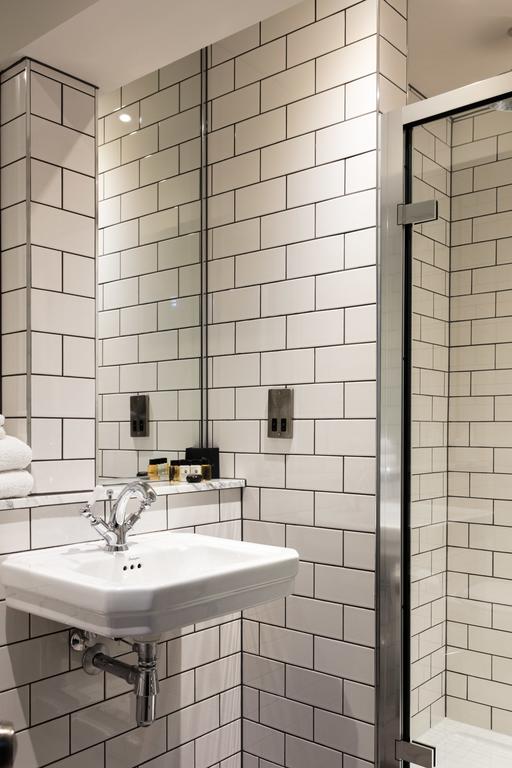 Upstairs the six bedrooms are each different yet maintaining perfectly the distinctive style of The Driftwood. There’s exposed brickwork and wooden panelling in abundance, Stylish light-fittings and details, clever colour combinations and fully-tiled bathrooms with glossy stretcher bond tiles. All the rooms have king size or super king Hypnos beds, plump goose down pillows (if you need non-allergenic, just ask), Lavazza coffee machines, flatscreen televisions, retro-style fridges and free wi-fi. The larger sea view rooms also include a deep-buttoned chesterfield sofa-bed.