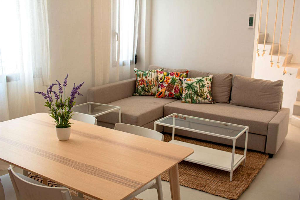Jasmine (Abajo Fusion). Simplicity reigns in this room overlooking the inner courtyard of the new Abaco Fusion building. Jasmine is a very special flower grown throughout the town of Altea.