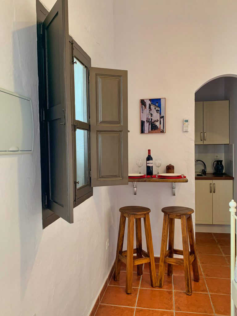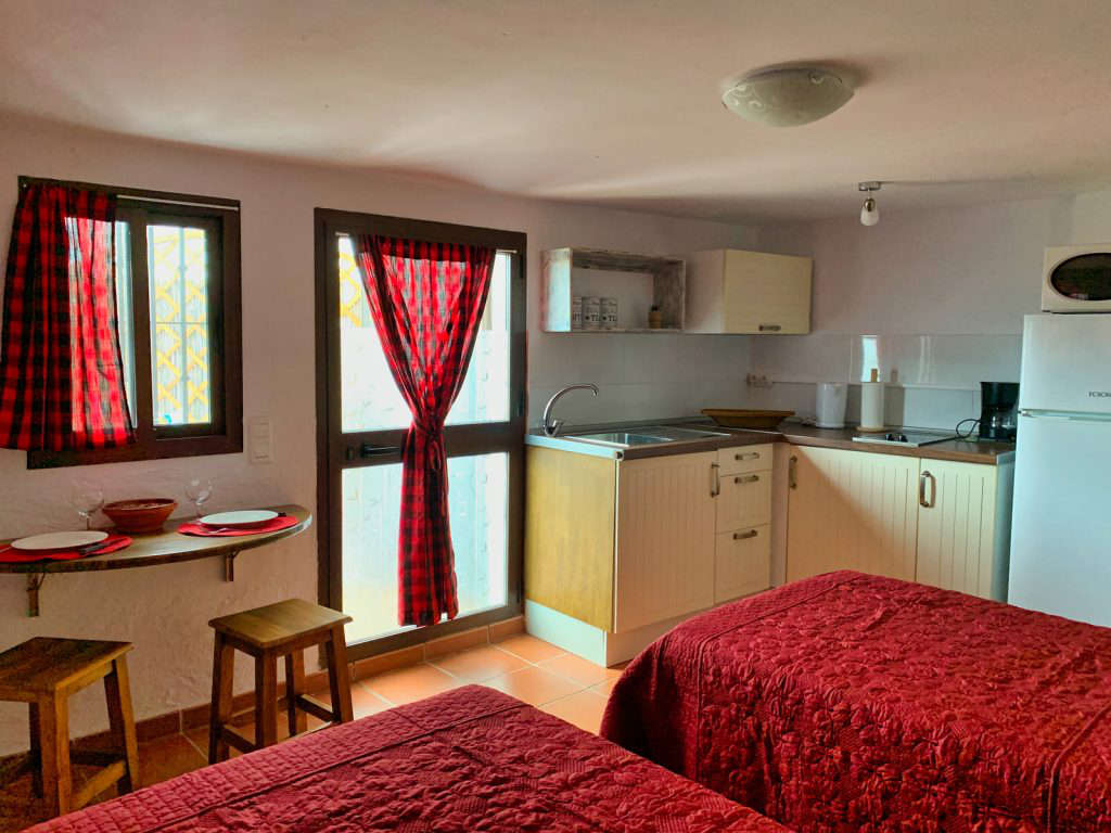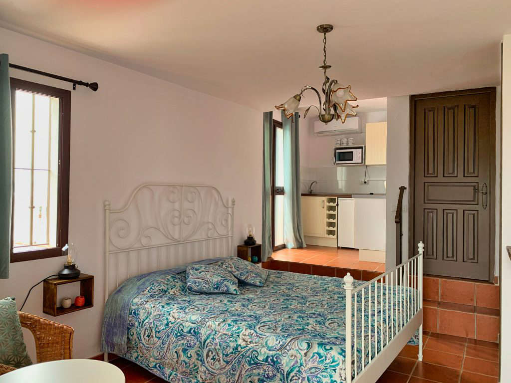 The accommodation comprises six studio apartments, all with the same levels of comfort and facilities. The varying room rates reflect the different sizes ranging from 17m2 to 26m2, and in addition the Maroma room has a private terrace. All the studios feature a double bed (twin beds in Viñuela), an en-suite bathroom and a kitchenette with a fridge, microwave, toaster, kettle and coffee machine. There is air-conditioning for summer, heating for winter and wi-fi to keep in touch with the world. Food hampers can be pre-booked so the kitchen is ready-stocked on arrival.
