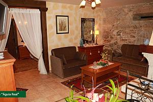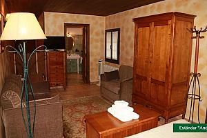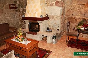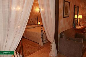 40m2, with a queen-size four-poster bed (of 1,50m), entrance from the top of the baroque interior patio, beautiful valley and patio views, a living room with fireplace -and a basket of fire wood included in the price- and a bathroom with a round bathtub for two.