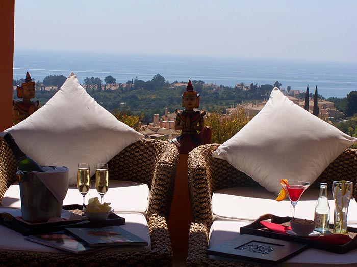 Marbella Heights is a luxury hotel created by the same team that brought us La Villa Marbella. It combines stunning architecture, decor and views with an attention to detail and warmth of service that is unsurpassed. Situated on a hill on the edge of Marbella, it looks out over a golf course to the Andalucian mountains and the Mediterranean Sea. Decorated in a delicate south-east Asian style (all the furnishings were imported personally by Marcos, the owner), the hotel has three indoor salons to choose from, winter and summer dining rooms, a terrace taking in the panoramic views, a gymnasium and a wine cellar. Beyond the terrace, the pool is a wonderful place to relax as long as you like.