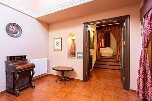In the guest rooms, the traditional style has been complemented by modern comforts whilst every care has been taken to preserve the original character of the building. Each room has a fully equipped bathroom, central heating, air conditioning, TV and minibar. There is an abundance of carved wooden furniture and sumptuous fabrics, while some rooms have a carved screen, or stone pillars, or a decorative ceiling, or carved wooden beams.