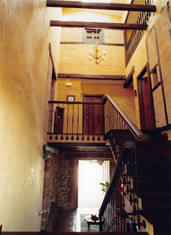 The heart of the house is the three storey hall and stairs with it's stone entrance arch and huge wooden door. The mixture of stone, brick, wood, plaster, ironwork and tiles bears witness to the long and varied history of the house. The dining room leads off from here, a cosy little space dominated by the stone entrance arch of the mediaeval tower at the centre of the house. There is also a lounge with a large old fireplace, another cosy place for reading, relaxing or chatting with friends. The spa is located in the loft, where there is a sauna, steam bath, hydromassage shower, mini hydromassage pool and a relaxation zone offering exclusive use for two people.